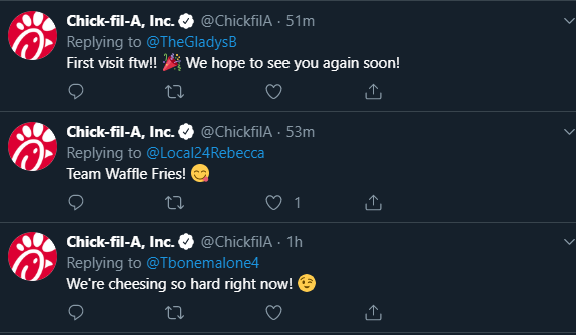 Do you see how Chik-Fil-A responds and interacts with its customers/fans! It may look like nothing but it tremendously helps them build brand/customer loyalty.